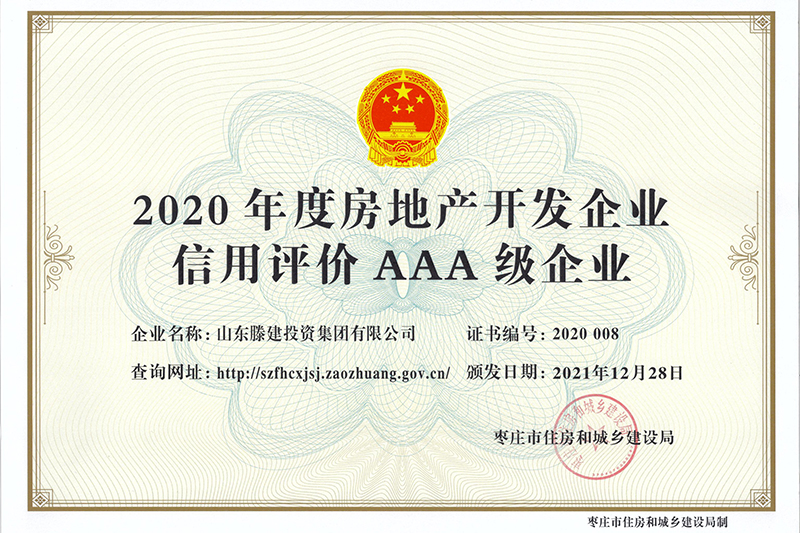 近期,枣庄市住房和城乡建设局发布了2020年度全市房地产开发企业信用等级评定结果。乐动有限公司凭借在企业客观信用能力、经营信用情况、社会信用等方面出色的综合实力,荣获2020年AAA级房地产开发企业最高信用等级。房地产开发企业信用评定是枣庄市住房和城乡建设局依据《枣庄市房地产开发企业信用评价实施细则